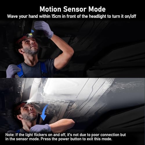 Diese Stirnlampe bietet insgesamt 10 verschiedene Beleuchtungsmodi – 5 Normalmodi für unterschiedliche Lichtbedingungen und 5 Sensormodi für eine berührungslose Bedienung. Zu den Normalmodi zählen XPG Weißlicht, COB Weißlicht, Kombination von beiden, COB Rotlicht sowie COB Rotlicht SOS. Die Sensorfunktion ermöglicht ein einfaches Ein- und Ausschalten durch Handbewegungen innerhalb von 15 cm – ideal, wenn Ihre Hände beschäftigt sind oder Sie Handschuhe tragen.
