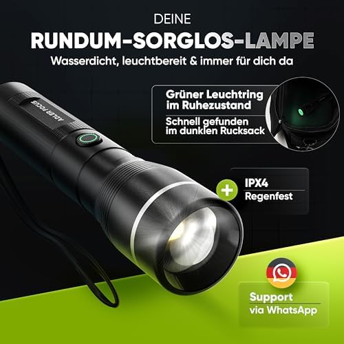 • Beeindruckende Reichweite von bis zu 800 Metern – Ideal für nächtliche Abenteuer und Outdoor-Aktivitäten.
