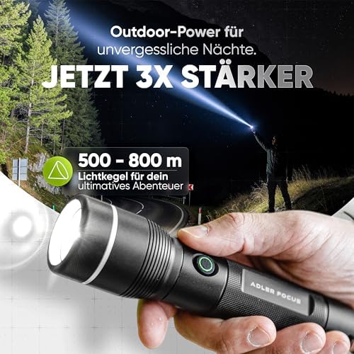 Erleben Sie mit der Adler Focus Taschenlampe eine neue Dimension der Beleuchtung. Mit einem einzigen Knopfdruck genießen Sie eine beeindruckende Reichweite von bis zu 800 Metern. Diese Taschenlampe ist ideal für nächtliche Abenteuer, lange Spaziergänge durch die Natur oder das Ausleuchten von Parkplätzen und Wegen.