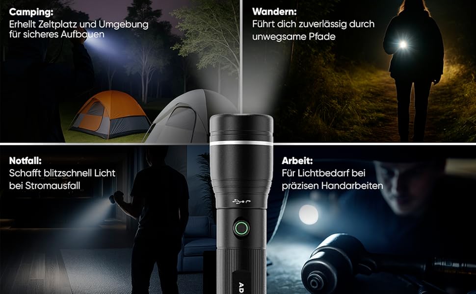 • Vielseitige Anwendungsmöglichkeiten – Ideal für Outdoor-Aktivitäten, Notfälle und alltägliche Beleuchtungsbedürfnisse.
