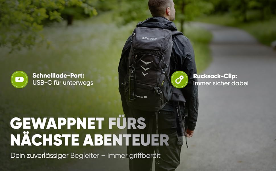 Sie müssen sich nicht mehr mit dem ständigen Wechseln von Batterien auseinandersetzen. Die Adler Focus Taschenlampe ist mit einer modernen USB-C-Ladetechnologie ausgestattet, die eine schnelle und praktische Aufladung wie bei einem Smartphone ermöglicht. Einfach anstecken und in nur 2,5 Stunden ist die Taschenlampe wieder einsatzbereit.