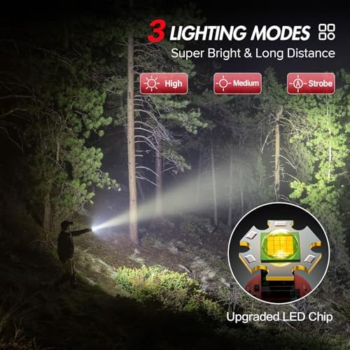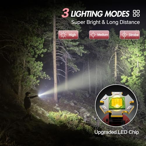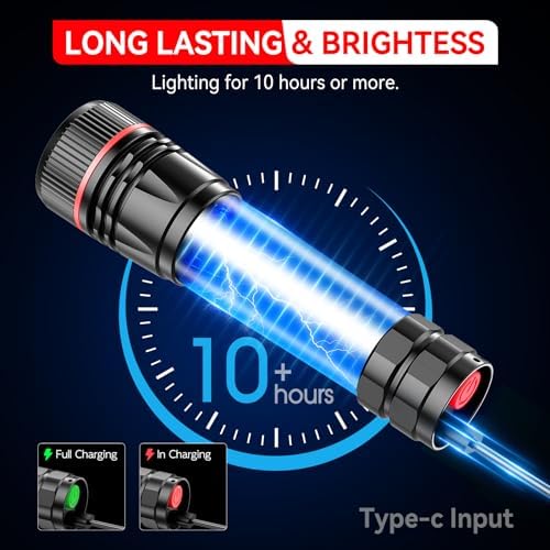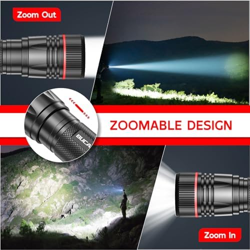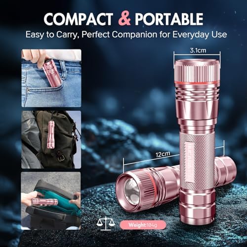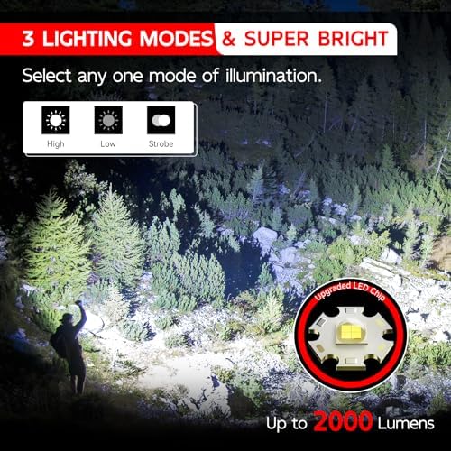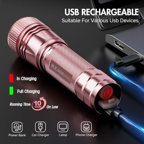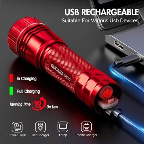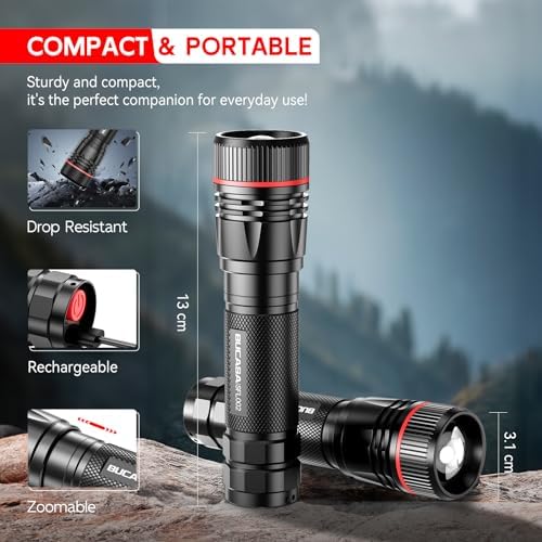 Die BUCASA Mini LED Taschenlampe ist mit einem hochentwickelten LED-Chip ausgestattet, der eine beeindruckende Lichtstärke von bis zu 2000 Lumen erzeugt. Diese Taschenlampe beleuchtet größere Flächen als herkömmliche Modelle und kann Objekte bis zu 300 Meter entfernt mühelos fokussieren. Egal ob Camping oder im Notfall, diese wiederaufladbare LED-Taschenlampe ist Ihr zuverlässiger Begleiter.