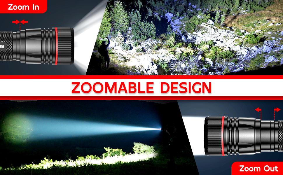 Die BUCASA Taschenlampe ist nach IP65 wasserdicht und besteht aus einer speziellen Militär-Aluminiumlegierung, die rutschfest, stoßfest und korrosionsbeständig ist. Sie funktioniert selbst unter schwierigen Wetterbedingungen. Diese Eigenschaften machen die zoombare LED-Taschenlampe perfekt für Aktivitäten wie Angeln, Laufen, Camping, Wandern oder Hundespaziergänge sowie für den Einsatz beim Stromausfall und in Notfällen.