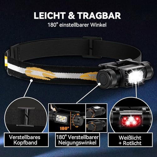 Sofirn H05B Stirnlampe mit Rotlicht – Helle LED Kopflampe, USB-C wiederaufladbar, waterproof für Joggen, Camping & Angel