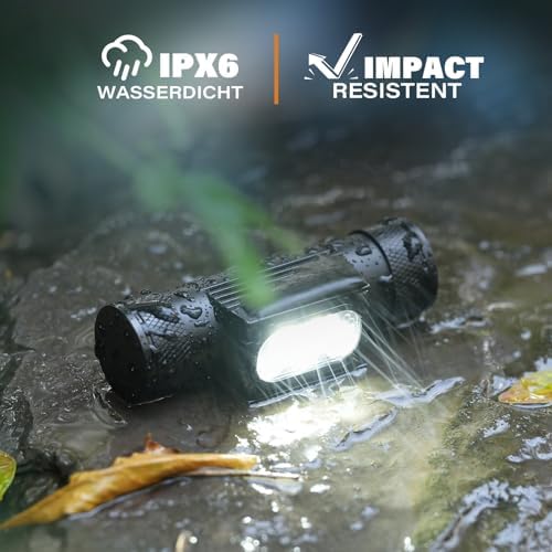 Die Stirnlampe ist aus einer robusten Aluminiumlegierung gefertigt, die sowohl stoßfest als auch äußerst langlebig ist. Dank der wasserdichten Konstruktion ist sie für sämtliche Wetterbedingungen geeignet und hält intensiven Outdoor-Einsätzen problemlos stand.